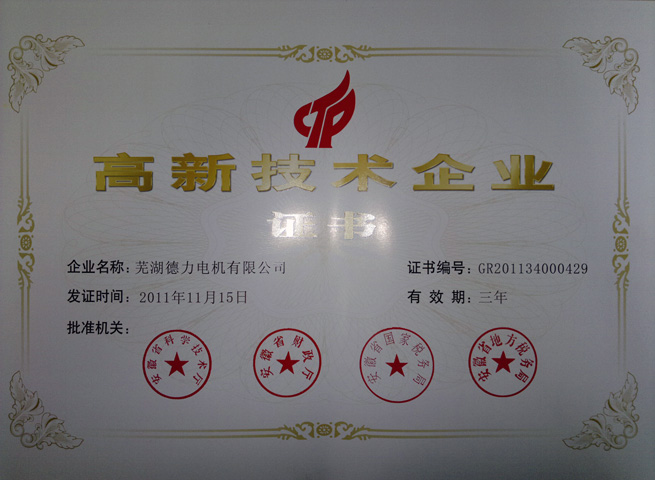 2012年3月16日,安徽省科技廳網站公布了已經通過認定的我省2011年第二批282家企業(yè)通過高新技術企業(yè)名單,蕪湖德力電機有限公司位列第282位,公告如下:關于公布安徽省2011年第二批高新技術企業(yè)認定名單的通知各市及...